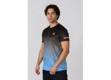 Sportowa koszulka o lekkiej, oddychającej konstrukcji z płynnym przejściem koloru od bieli do jasnego niebieskiego. Wykonana z szybkoschnącego materiału, który dobrze odprowadza...